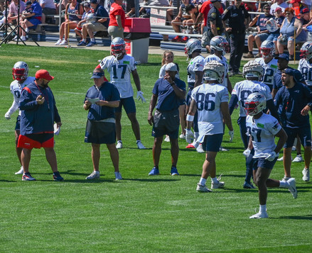 The starters were all in the mix. Jalen Mills, Malcom Butler, Marcus Jones and a few others all broke up passes. Safety Kyle Dugger ended the drills with a pick-six, which resulted in the entire offense dropping down for pushups.