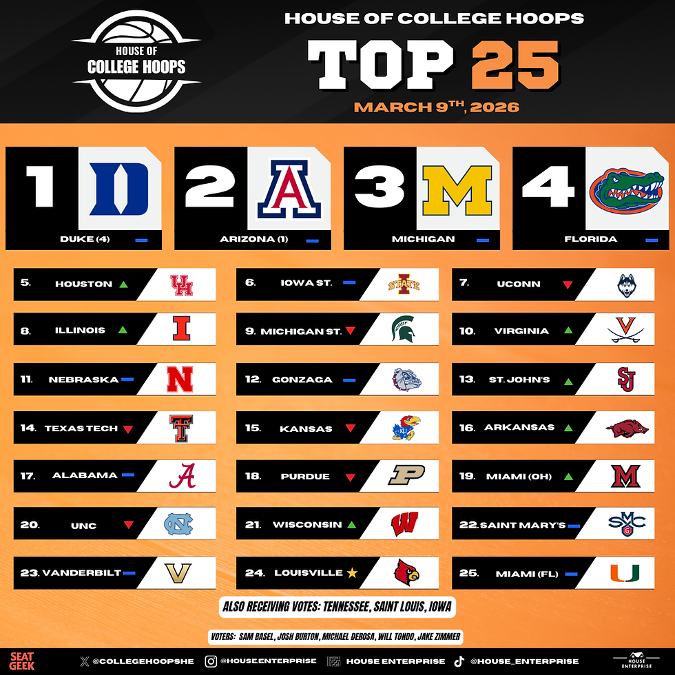 The House of College Hoops Top 25: March 9th, 2026